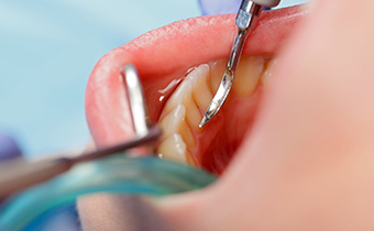 歯ぐきの中に入り込んだ歯石や細菌を、歯の根の表面まで丁寧に除去する処置です。歯の根をなめらかに整えることで、細菌が再び付着しにくい状態をつくり、歯周病の改善と再発防止を目指します。